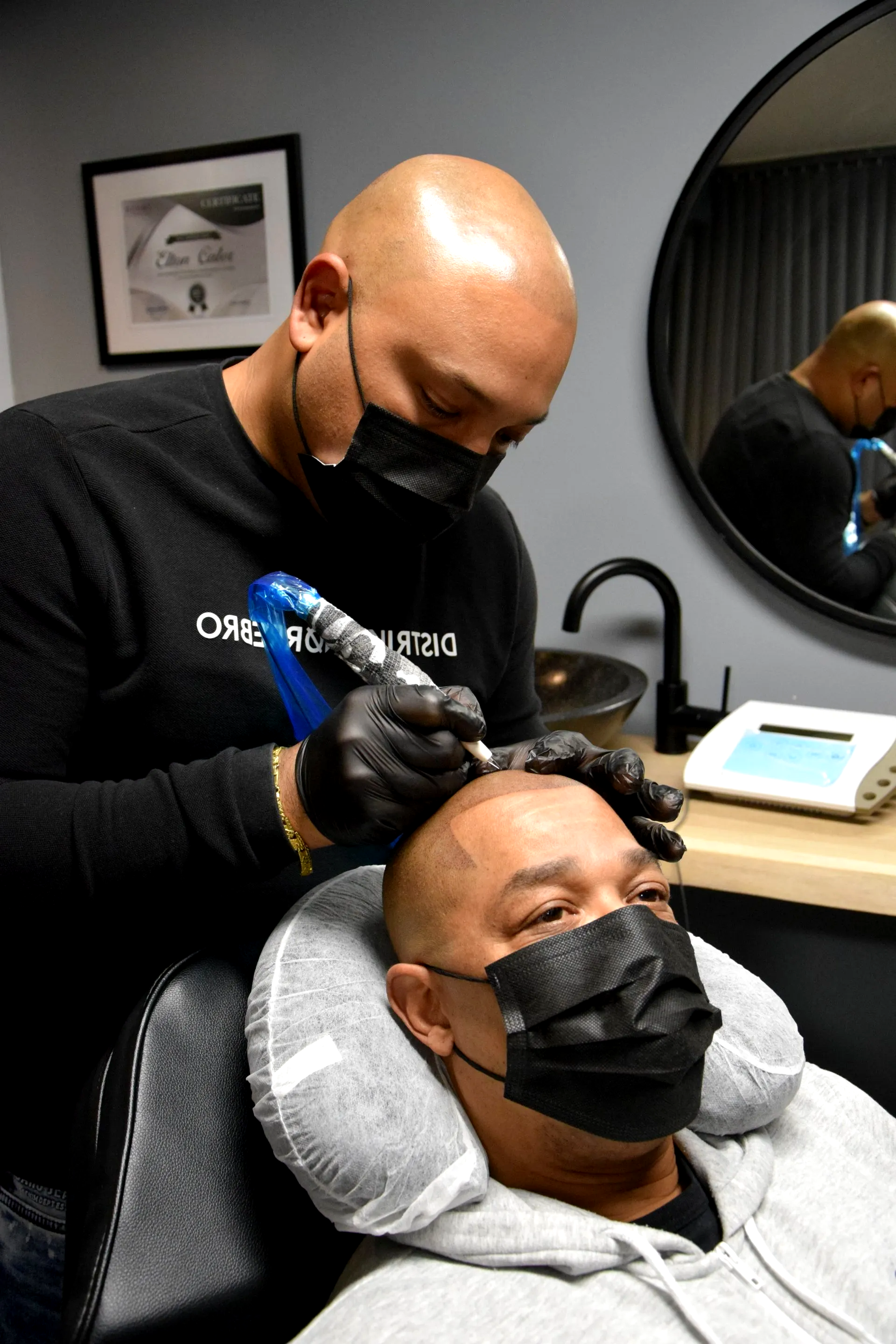 Mijn naam is Elton Calor en ik ga als een gecertificeerd hoofdhuid micropigmentatie behandelaar aan de slag.